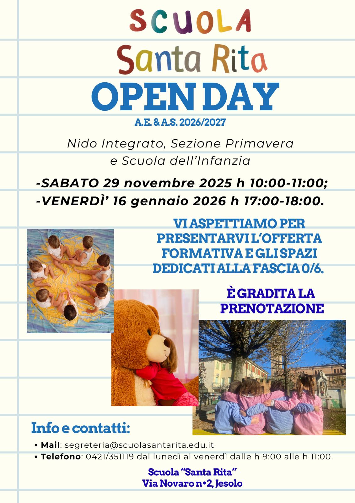 inviare una mail a segreteria@scuolasantarita.edu.it